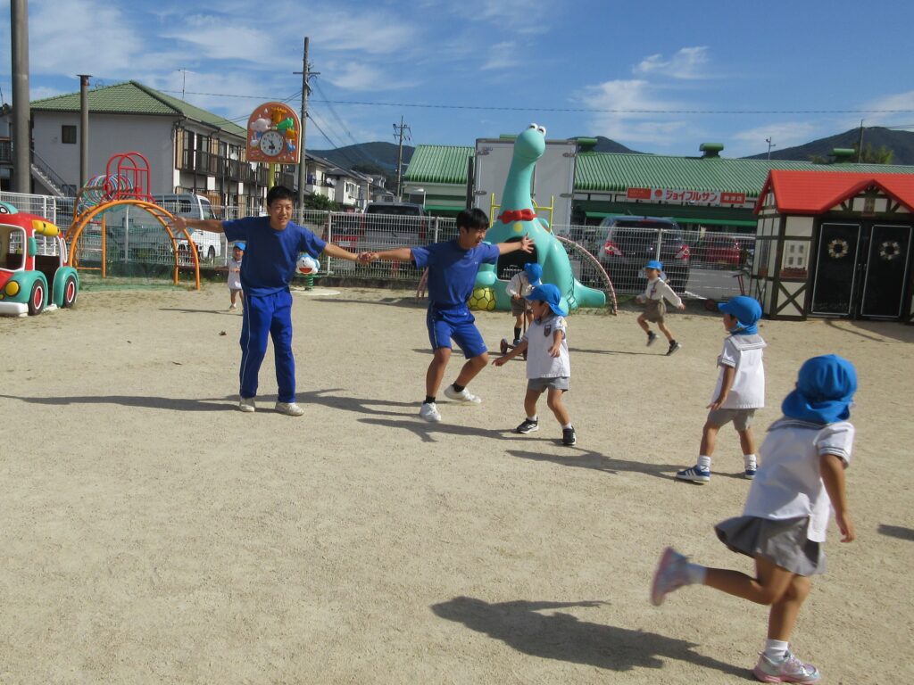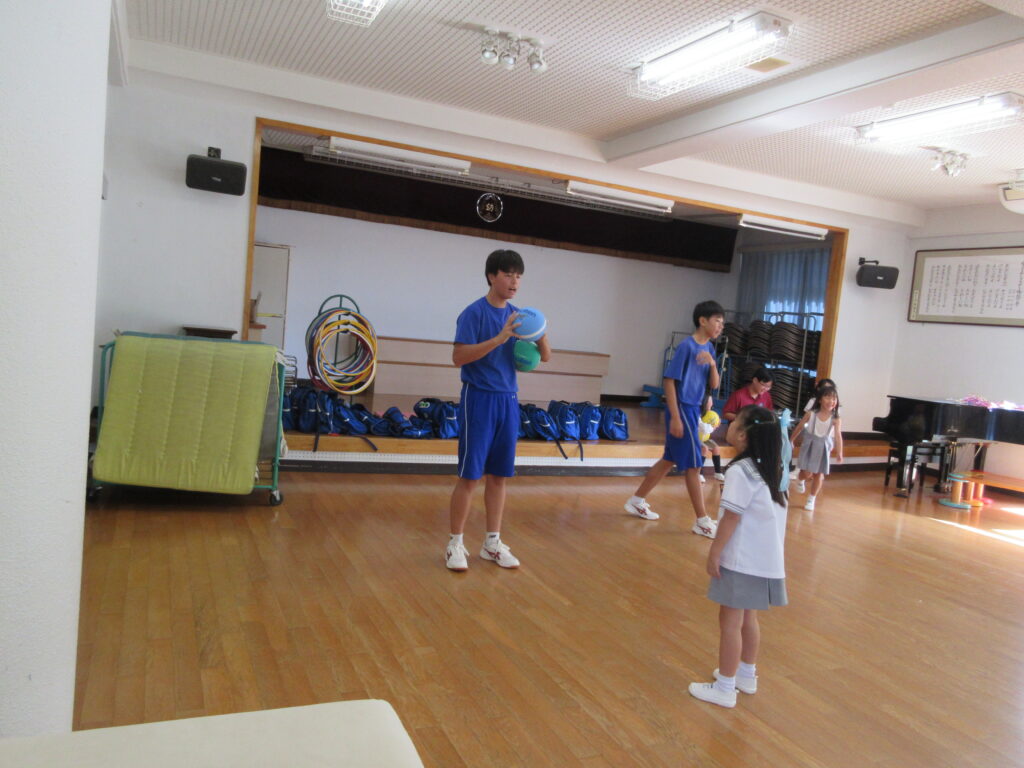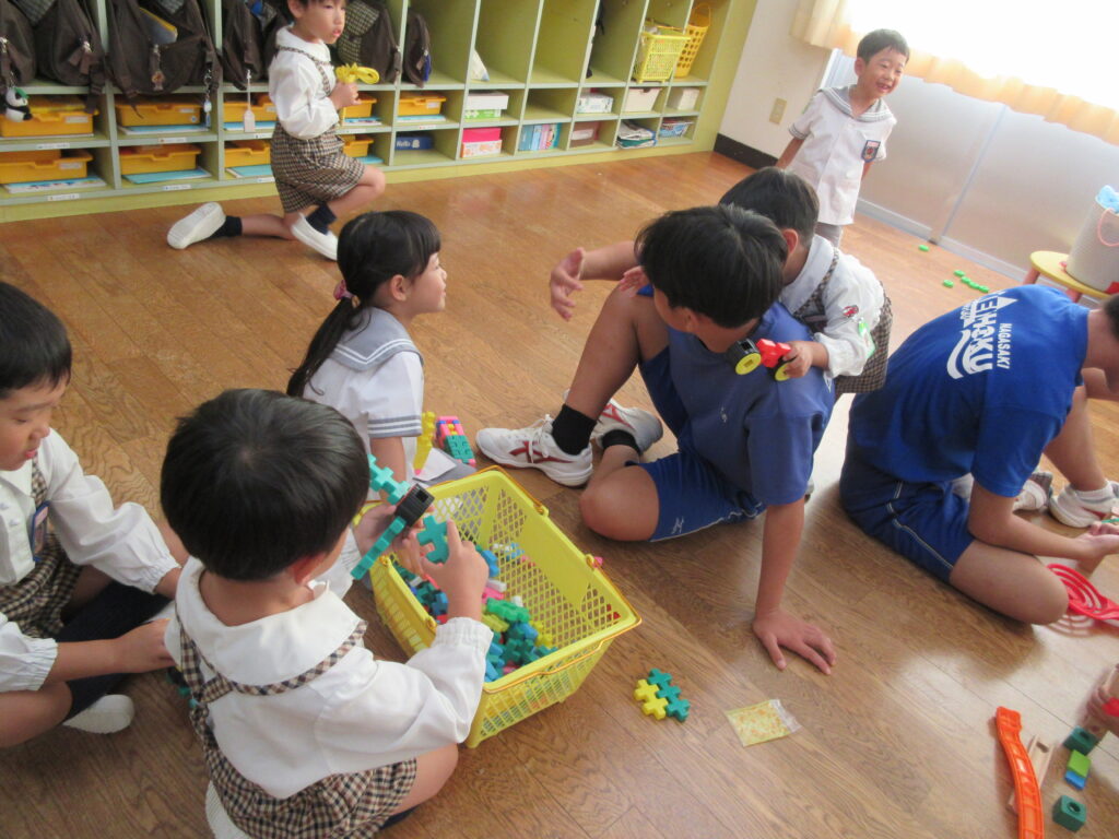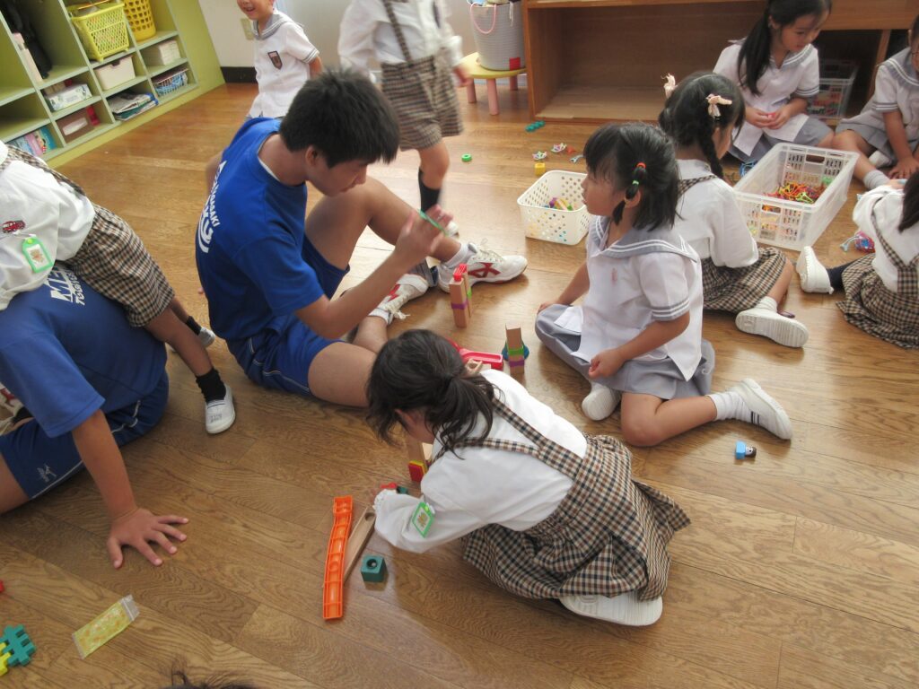 鳴北中学校の3年生16名が、総合的な学習の時間の保育実習で、幼稚園に来てくれました。代表の生徒さんが挨拶をして、各クラスに3~4名ずつ入って子ども達と触れ合いました。保育室のおもちゃで楽しく遊びました♪