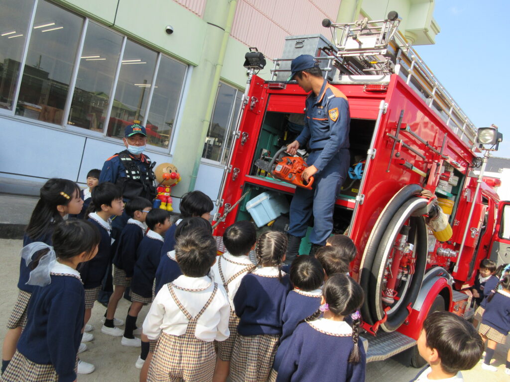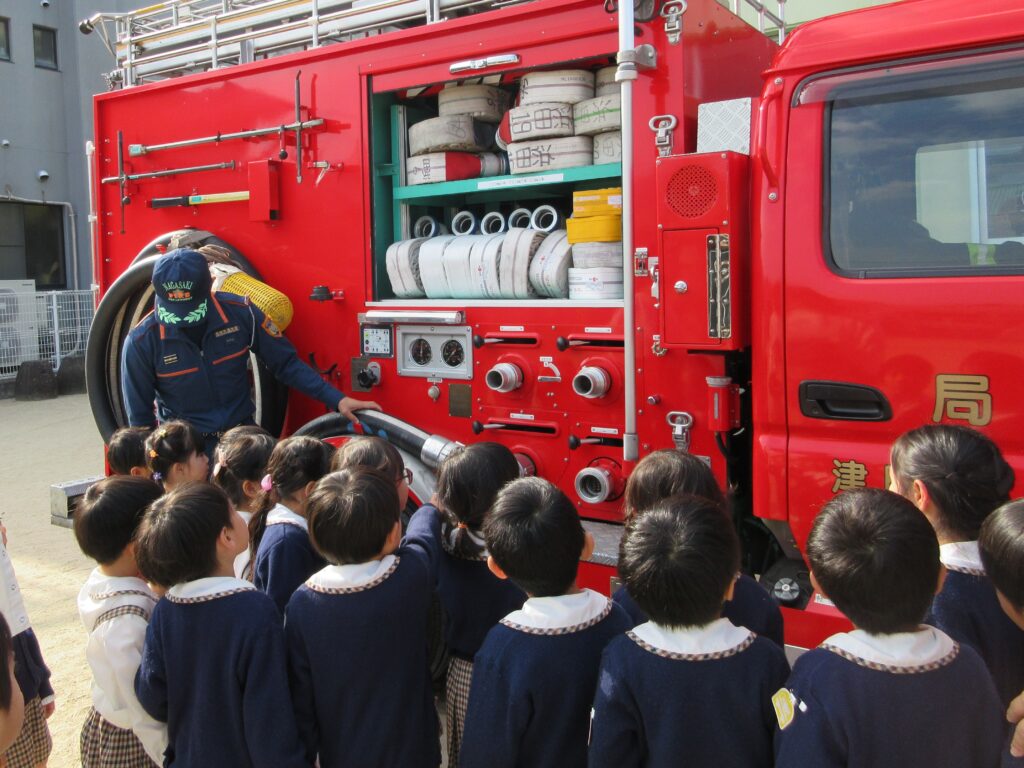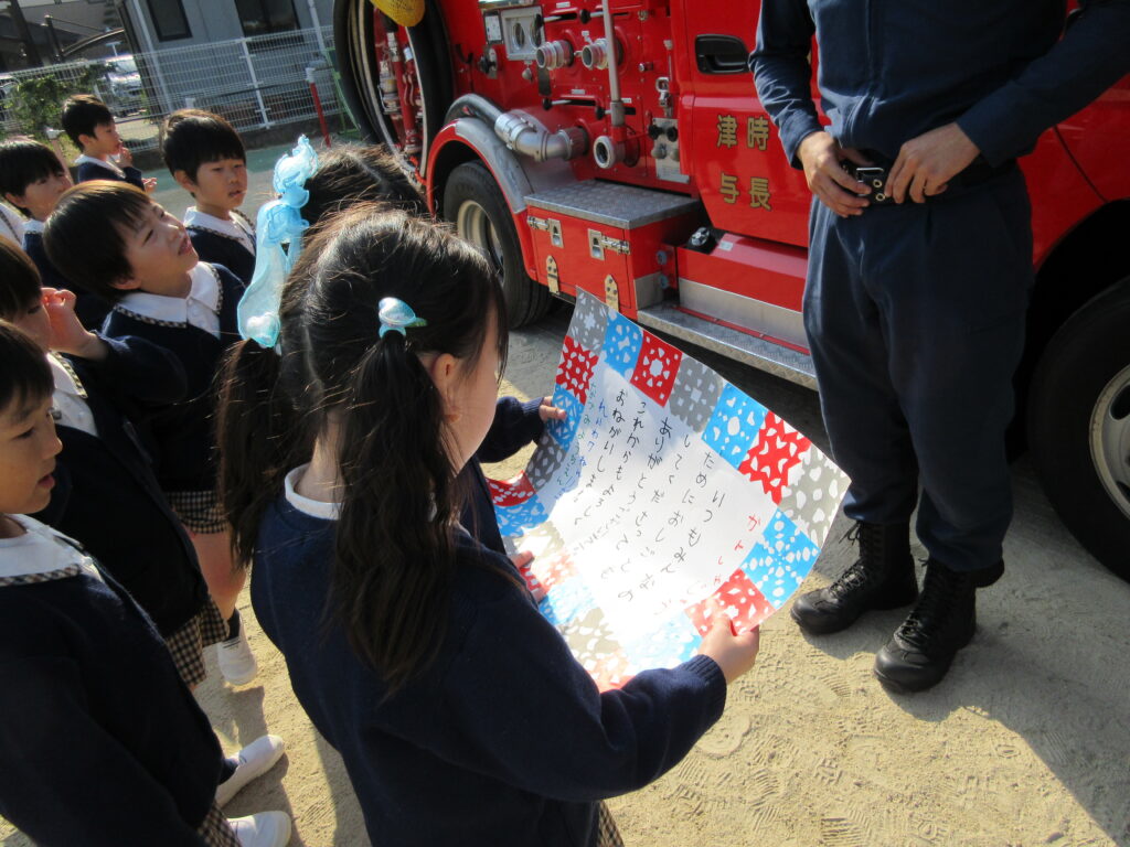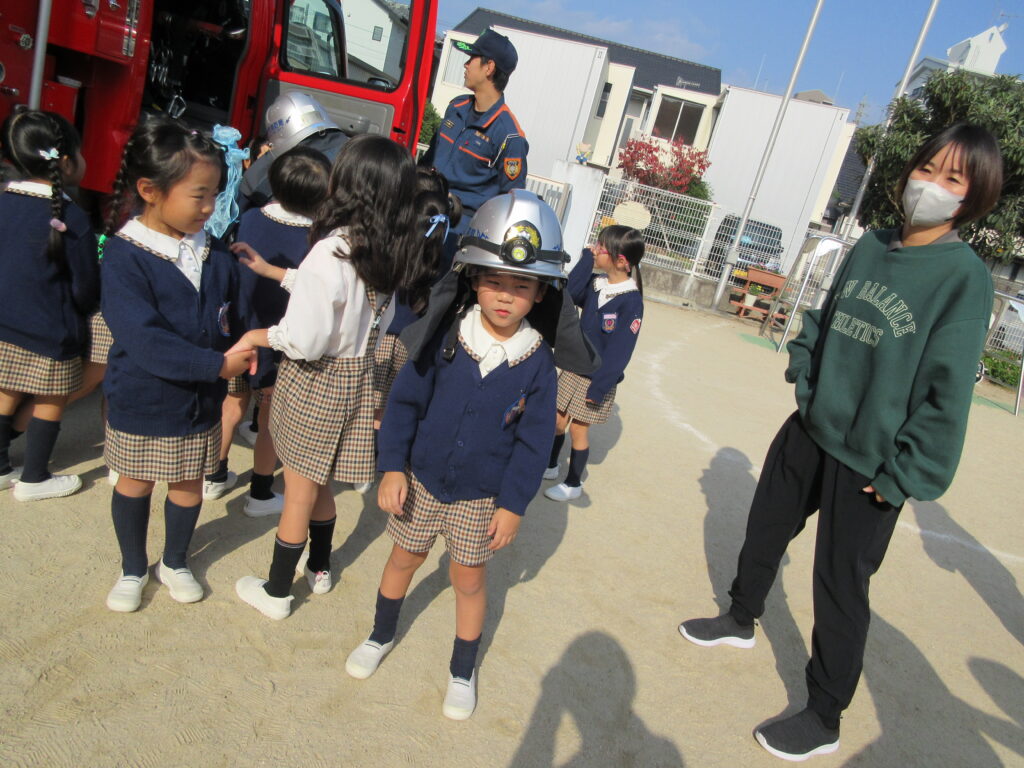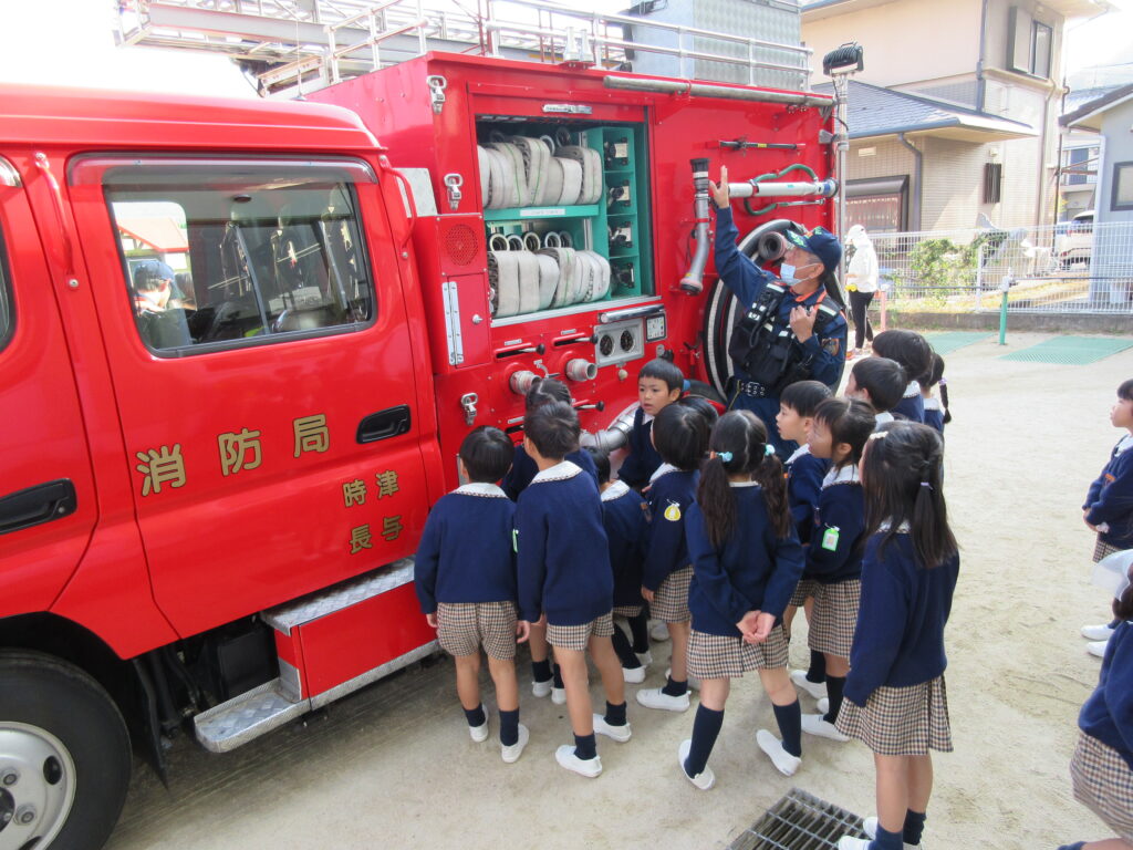 消防署の皆さん、お忙しい中避難訓練に来ていただきありがとうございました。消防車を見たり、消防士さんの話を聞いたりして、消防署の仕事の大切さを知ることができたと思います。