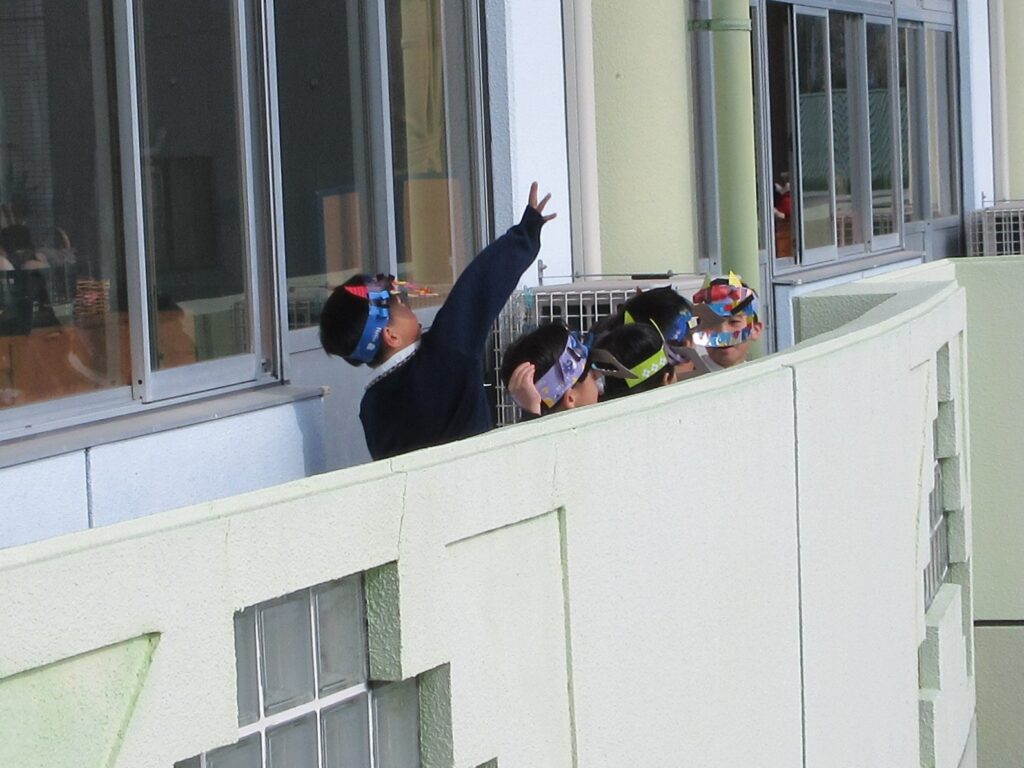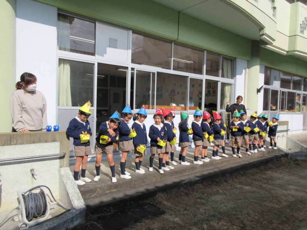 他のクラスも、大きな声を出して豆まきをしました。「おには~そと、ふくは~うち!!」
