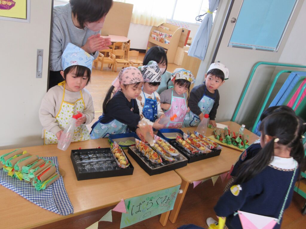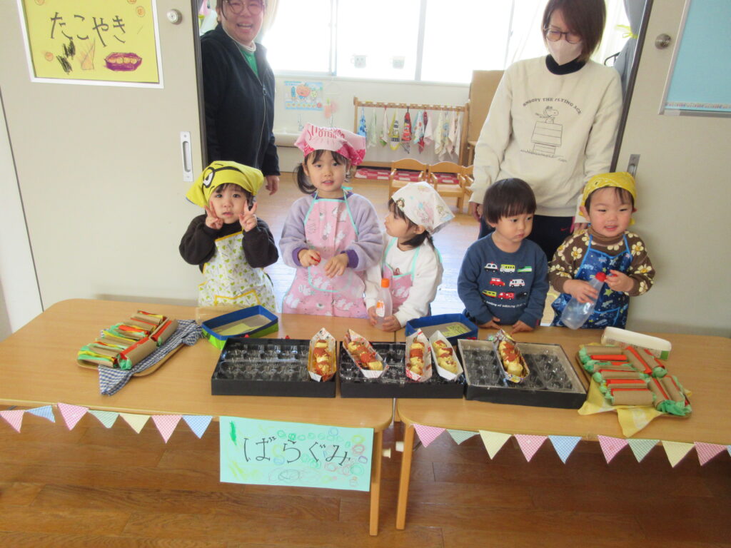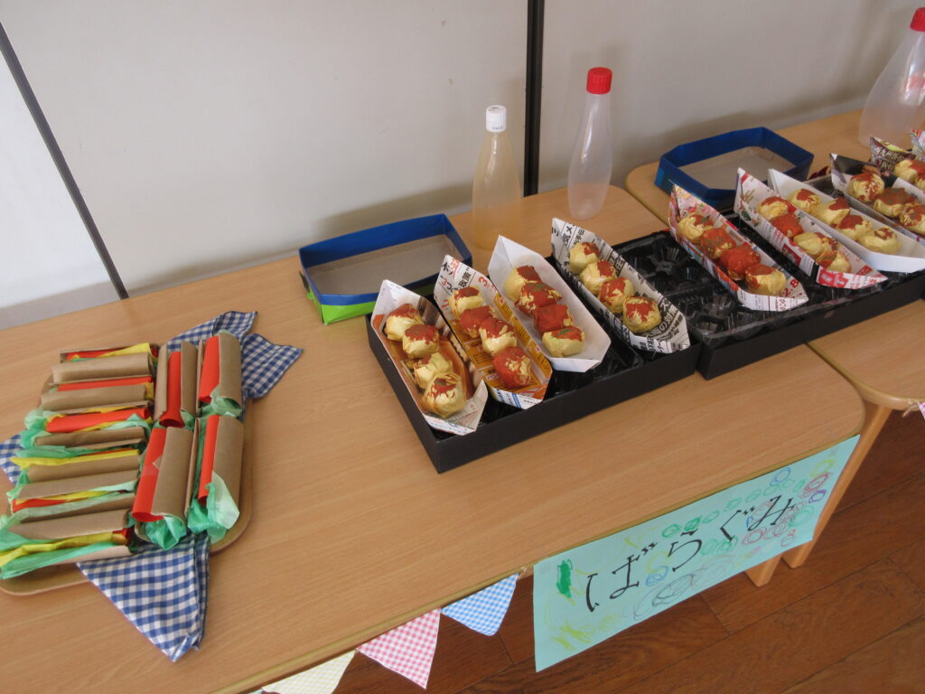 一番小さいばら組のお友だちは、たこ焼きとホットドックを売ります!!手つきよくマヨネーズやケチャップをかけてくれました😊💕
