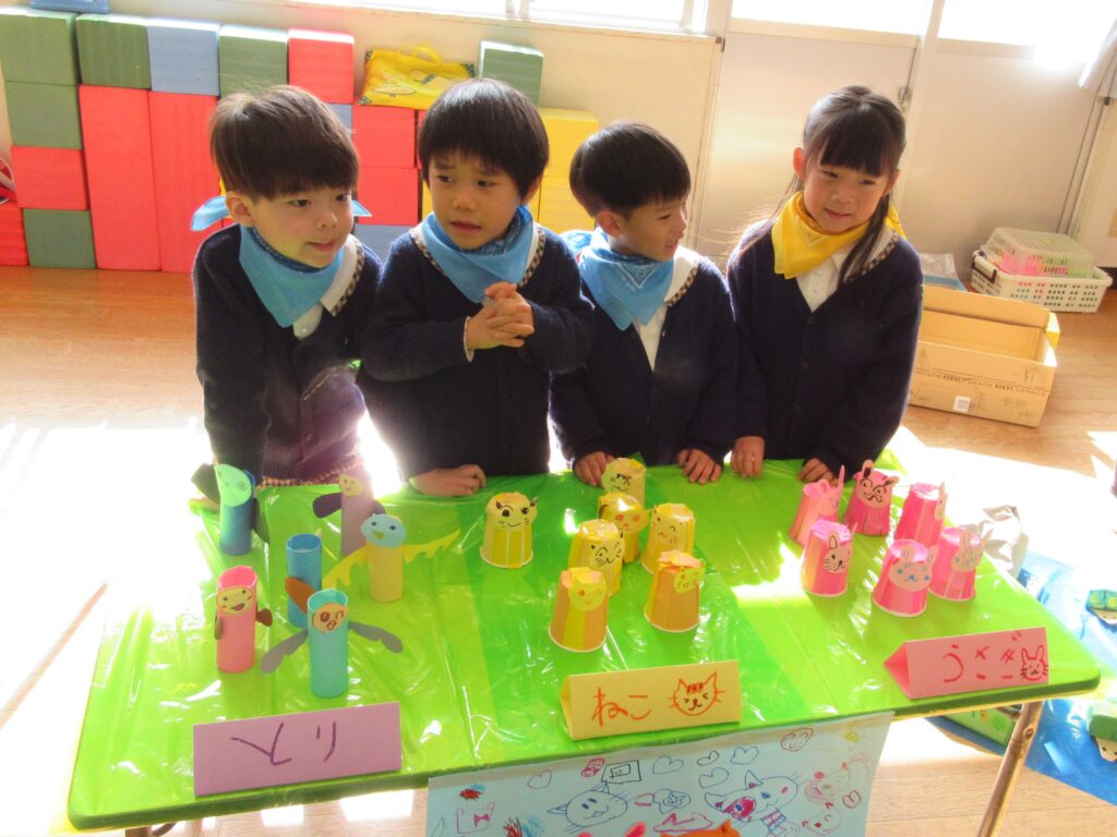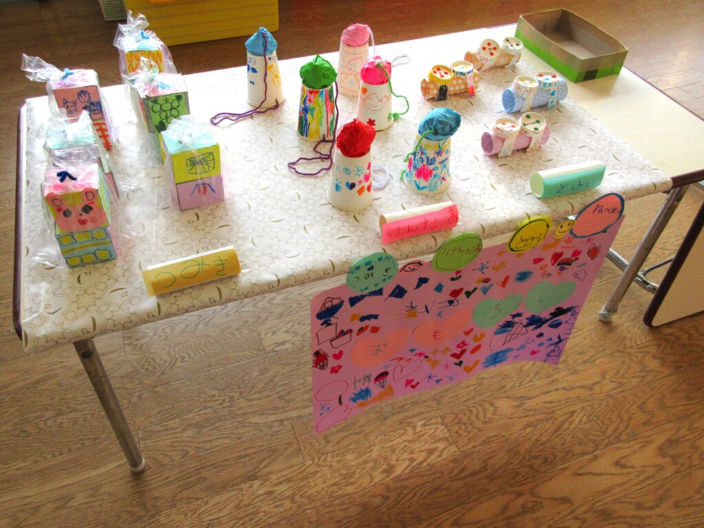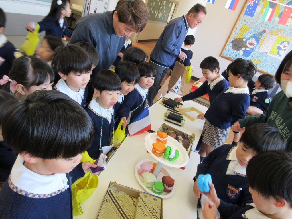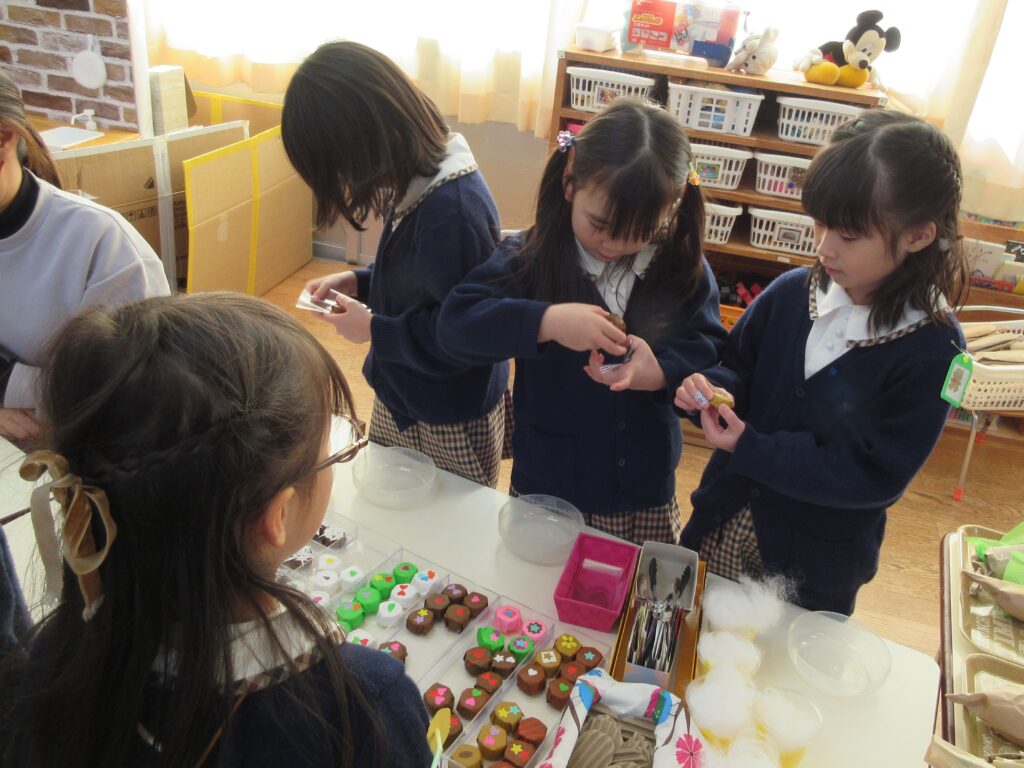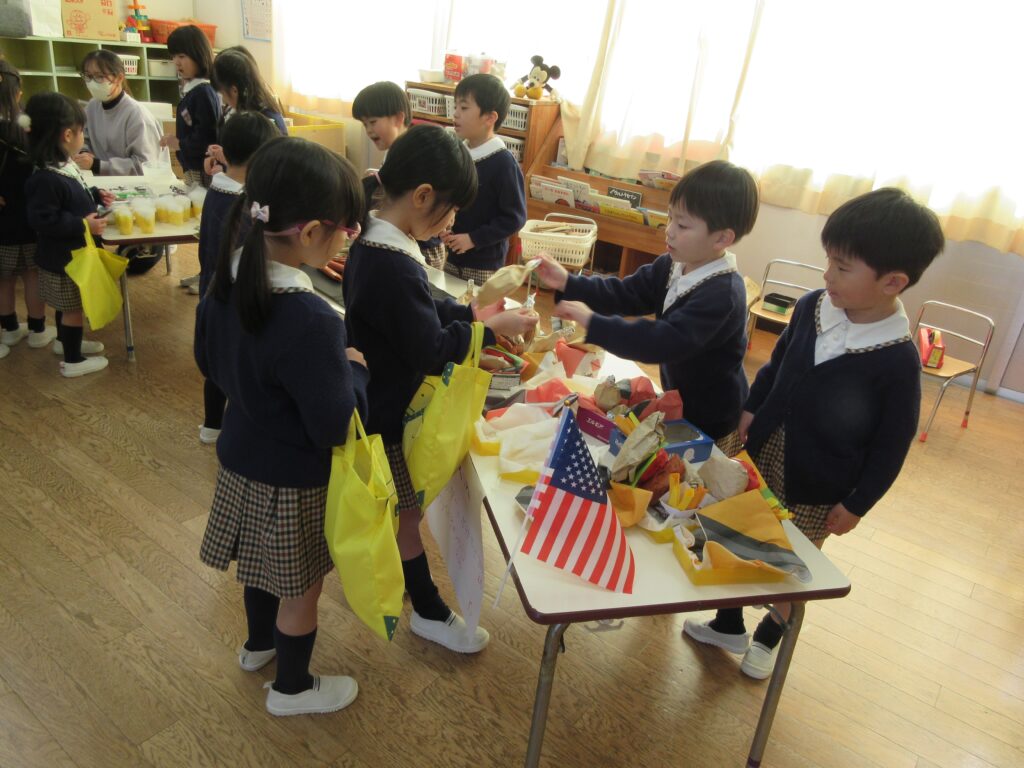 お店屋さんごっこは、究極のごっこ遊びです✨ どんなお店にするか考える、品物を工夫して作る、値段を決める、字や絵を書いてポスターを作る、売ったり買ったりする時の言葉を知るなど、各学年1年間やってきたことの集大成でがんばりました✨👏 みんないきいきと取り組んでいて、「楽しかった~!」とたくさんお土産を買って帰っていました。