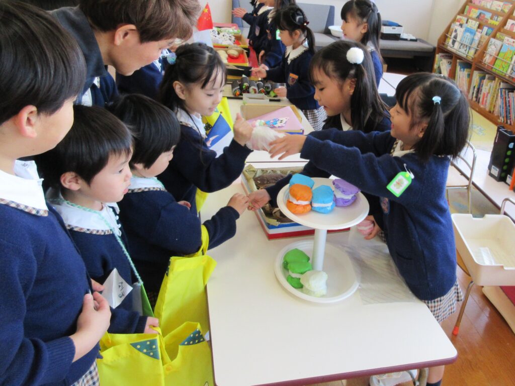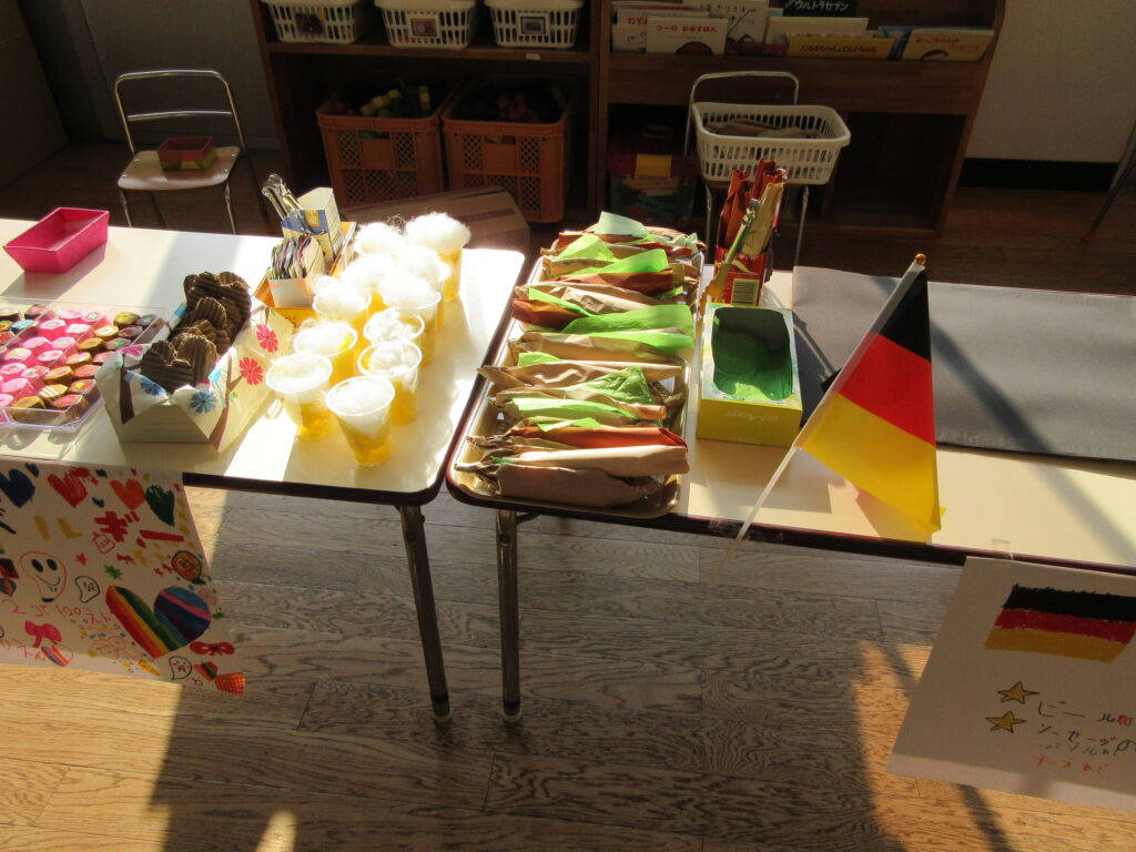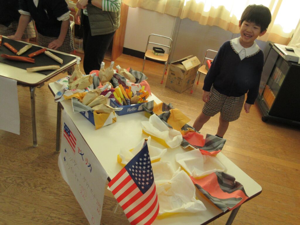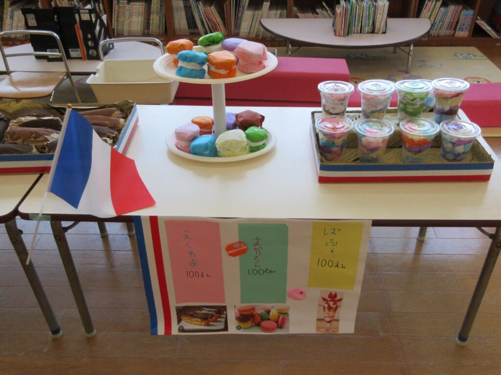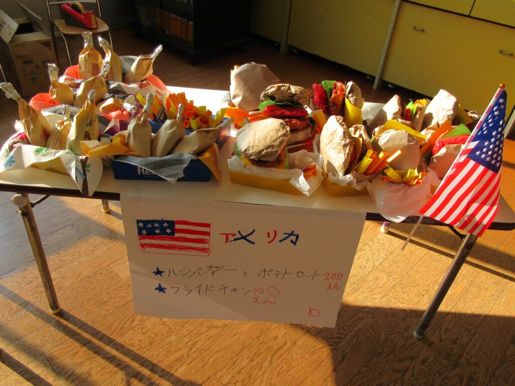 年長組は、世界の食べ物のお店屋さん、どれもおいしそう😋💕