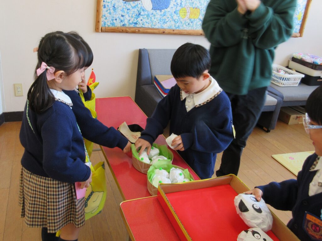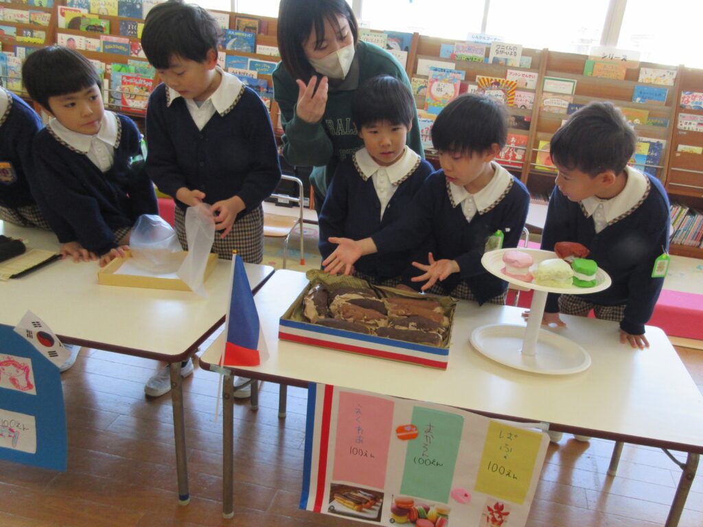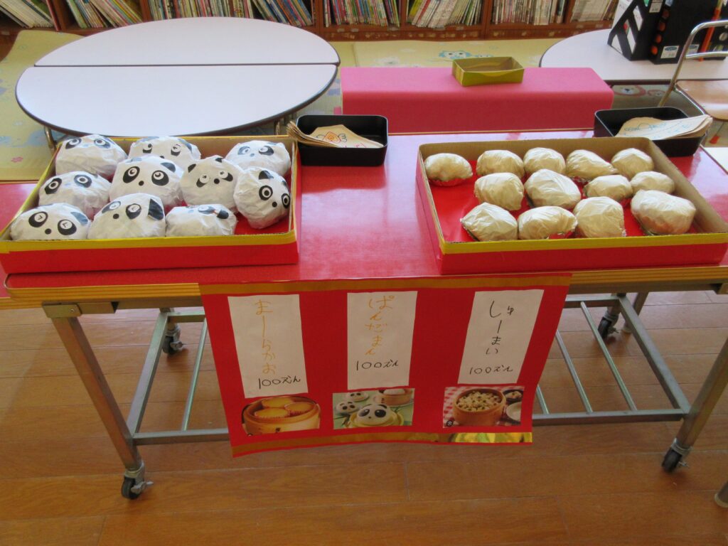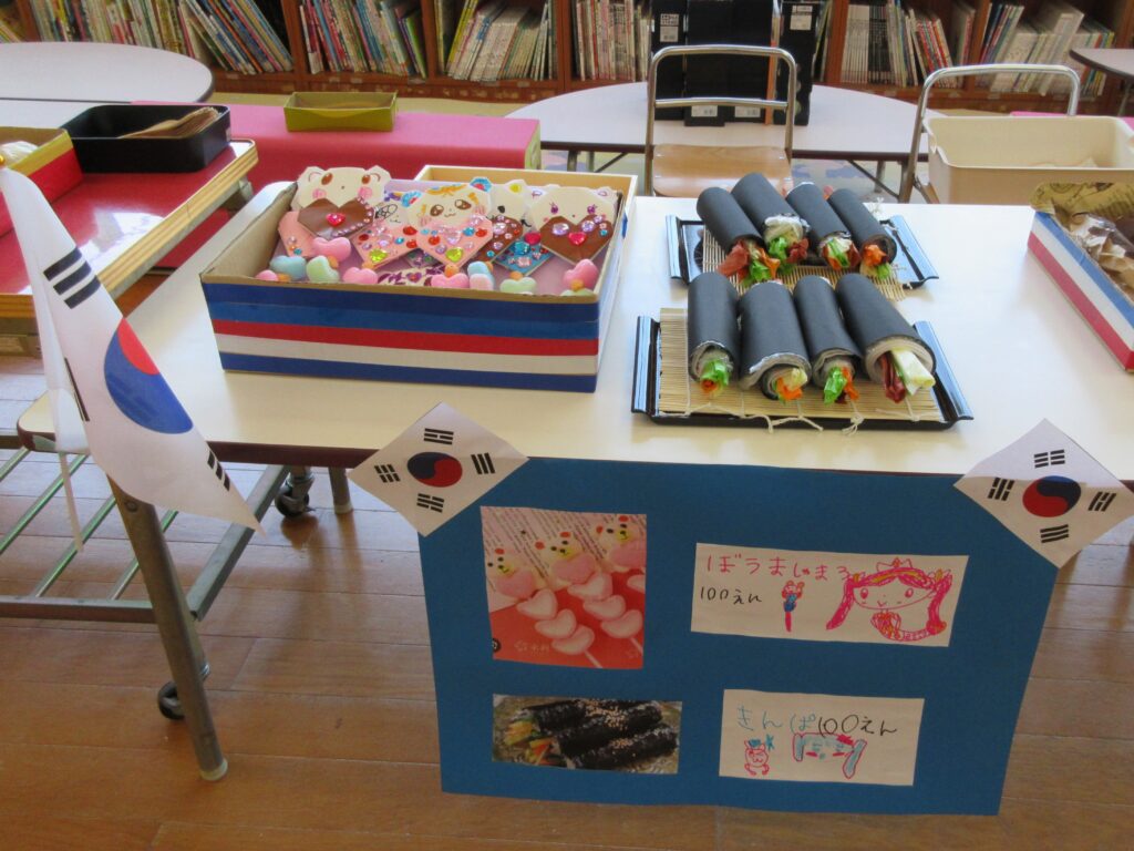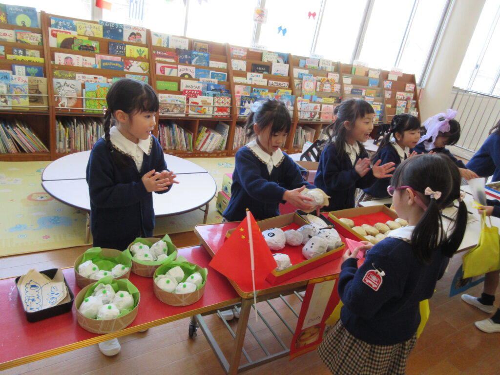 年長組は、世界の食べ物のお店屋さん、どれもおいしそう😋💕