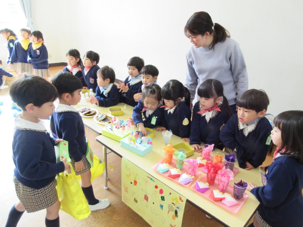 今日は、みんなが楽しみに準備を進めてきたお店屋さんごっこです😊✨ ばら組、年少組、年中組は、おゆうぎ室でお店を出します。魅力的なお店屋さんがいっぱい✨✨