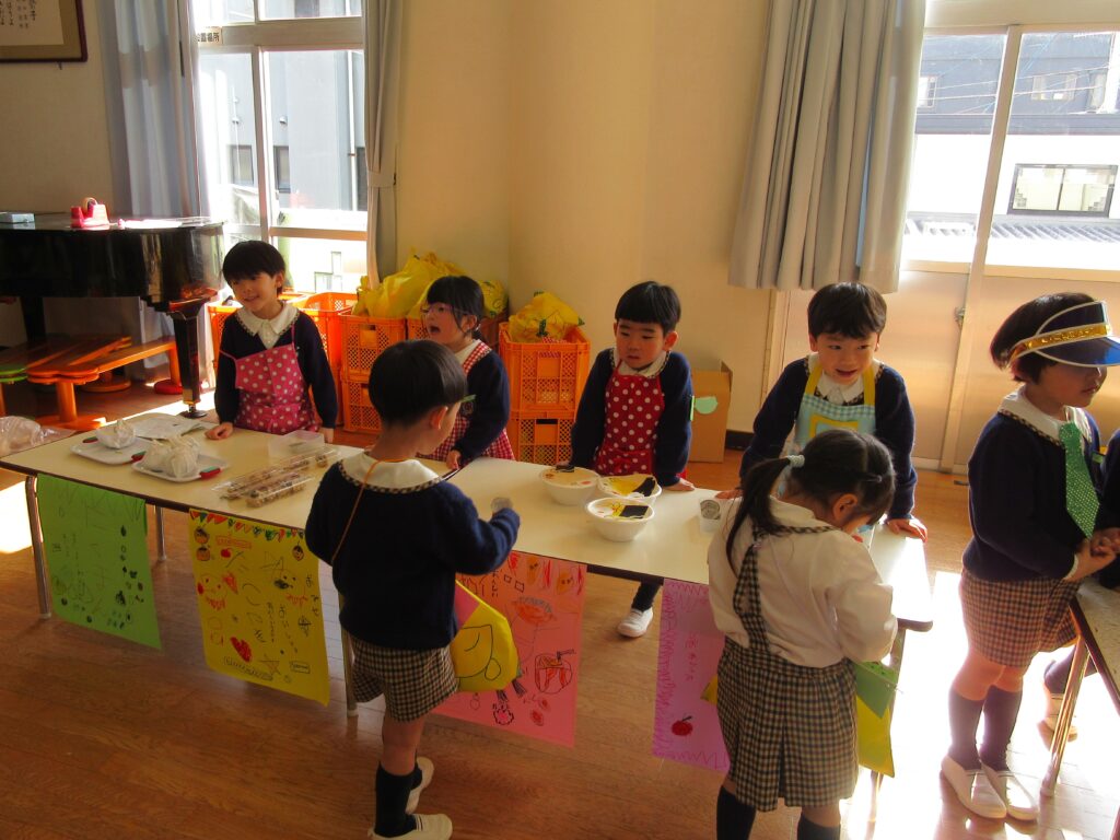 すみれ組も初めてのお店屋さんごっこ、がんばりました!!