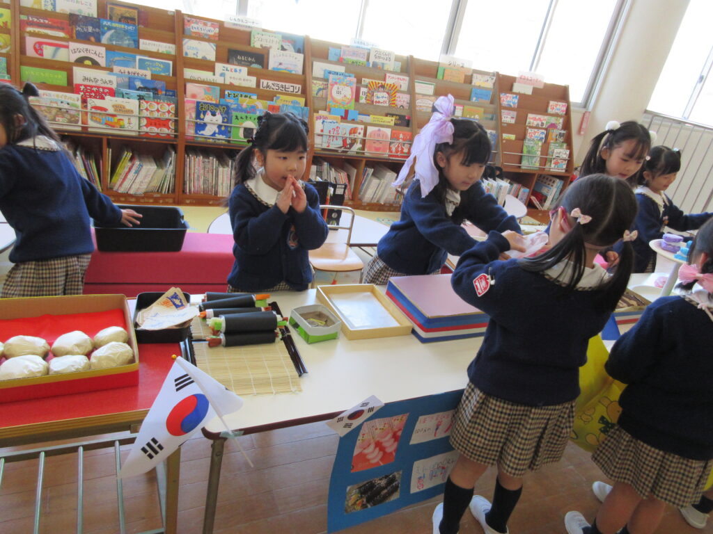 年長組は、『世界の食べ物』をテーマに、いろいろな国の料理やお菓子をみんなで調べて作りました!!