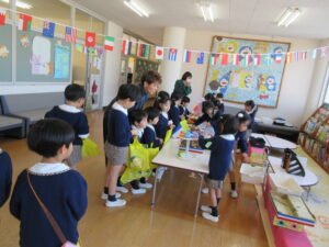 お店屋さんごっこは、究極のごっこ遊びです✨ どんなお店にするか考える、品物を工夫して作る、値段を決める、字や絵を書いてポスターを作る、売ったり買ったりする時の言葉を知るなど、各学年1年間やってきたことの集大成でがんばりました✨👏 みんないきいきと取り組んでいて、「楽しかった~!」とたくさんお土産を買って帰っていました。