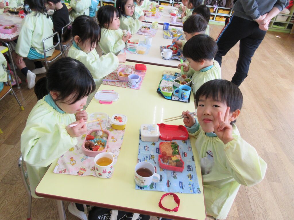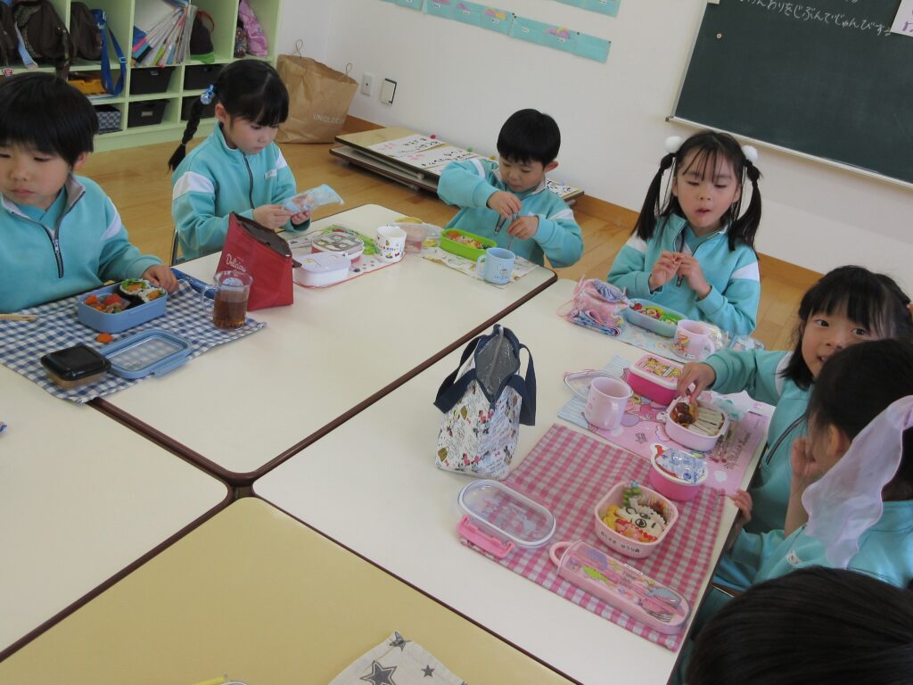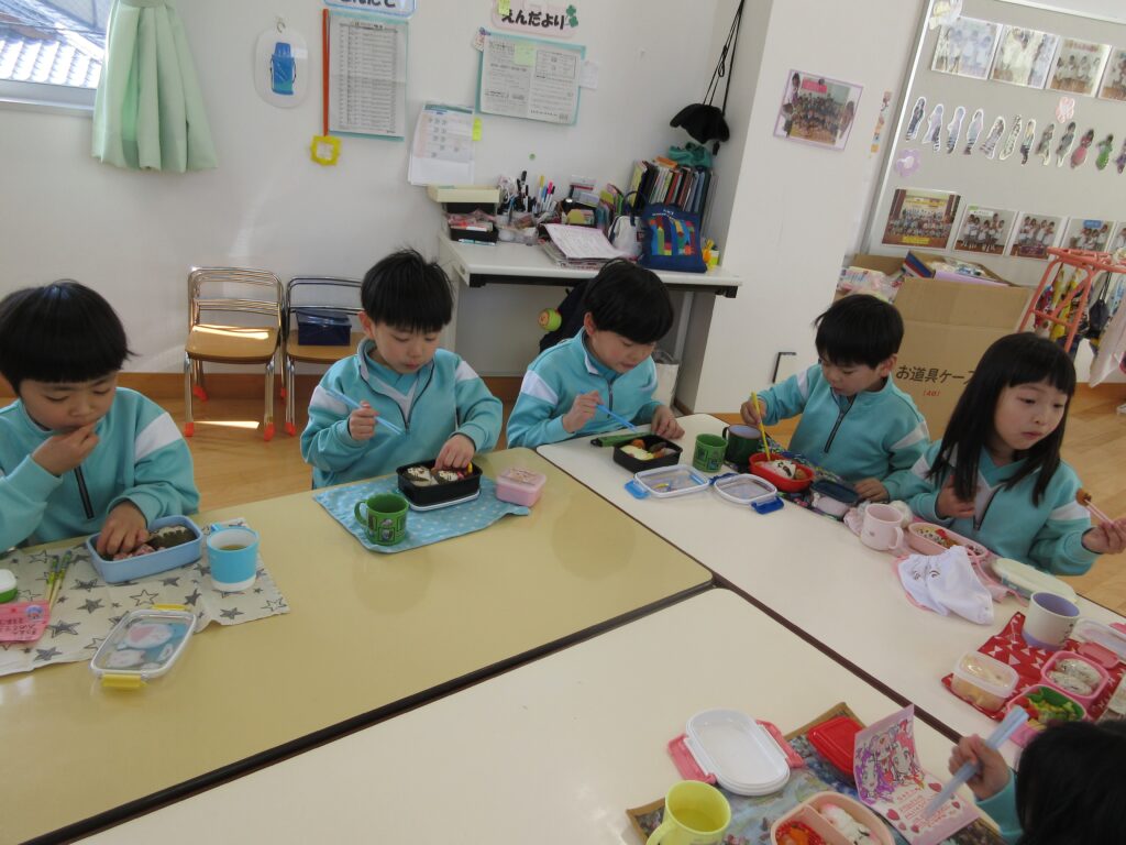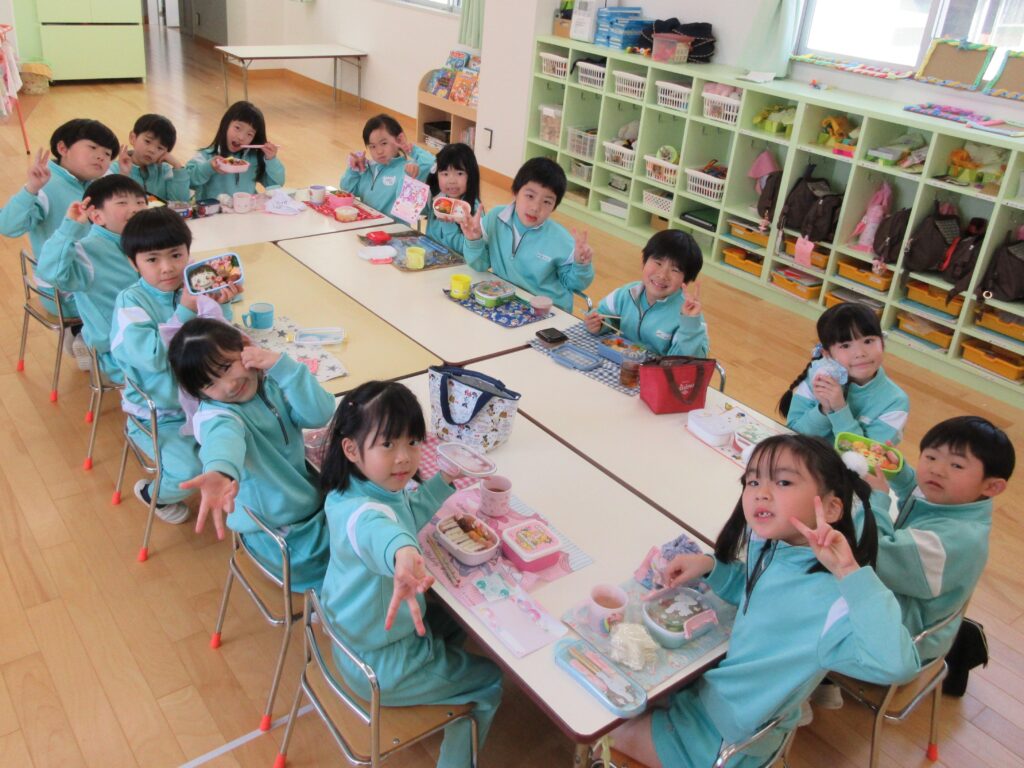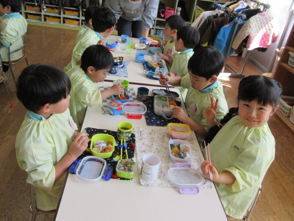 年長組は、幼稚園で最後のお弁当です🍱 みんな月1回のお弁当の日を楽しみにしていました💕
