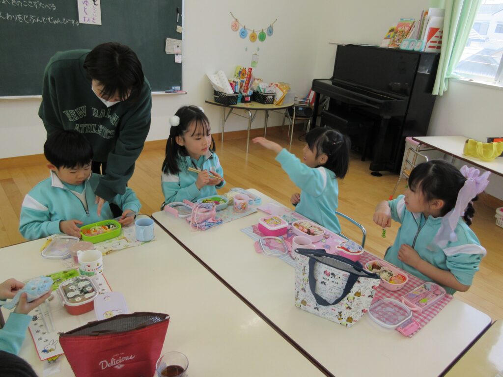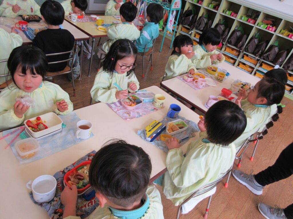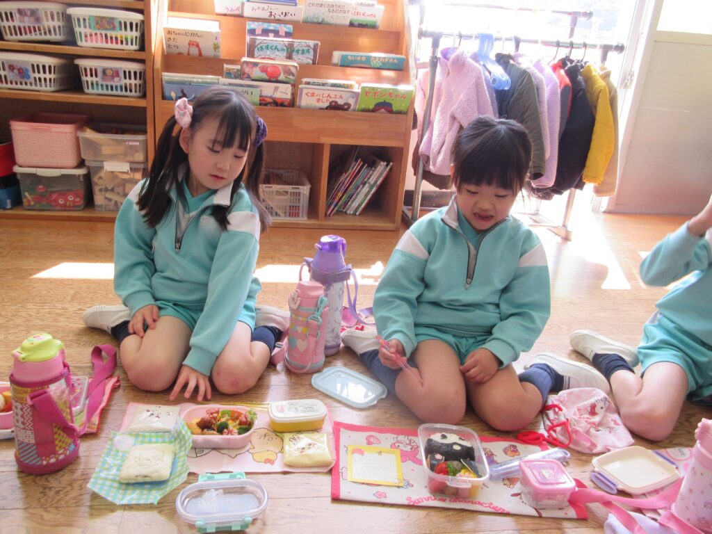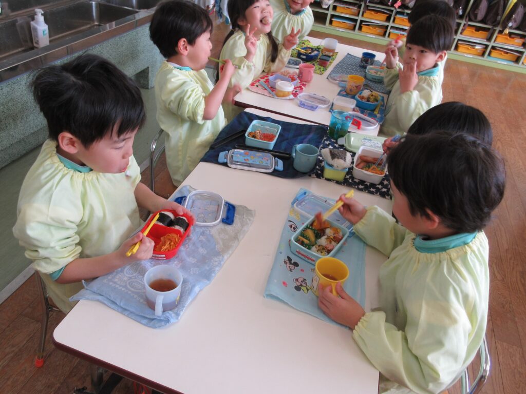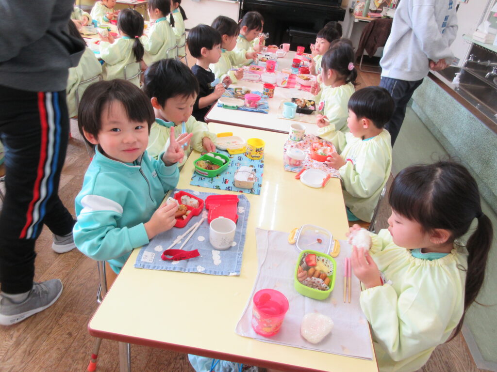 年長組は、幼稚園で最後のお弁当です🍱 みんな月1回のお弁当の日を楽しみにしていました💕